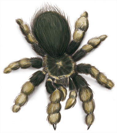Die Teraspinne erreicht eine Spannweite von bis zu einem Fuß. Ihr gesamter Körper ist dicht behaart, die Haare reizen die menschliche Haut.
